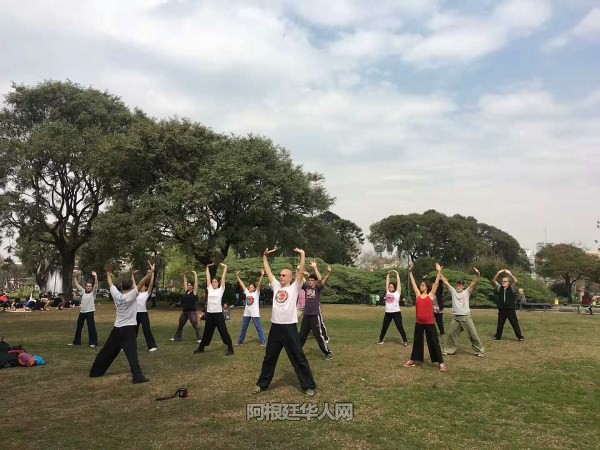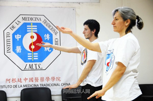 在传播中华中医的同时,我们又创办了中文学校,教授阿根廷人学习普通话和汉语。通过中国文化的学习,让学生们了解中国文化,其中包括书法、包括茶艺。尤其近年来,我们积极推广茶文化,让阿根廷人懂得喝茶不要加糖;让他们认识中国的十大名茶等等。我还了解到阿根廷人非常喜欢中国武术,由于我小的时候学习过南少林短拳,我又回到国内学习了健身气功和医疗气功,并带了一些学习资料回到了阿根廷。又派学生到中国进行学习,回来后担当我的助教。现在我已经有四位助教在帮助我教授健身气功和医疗气功。