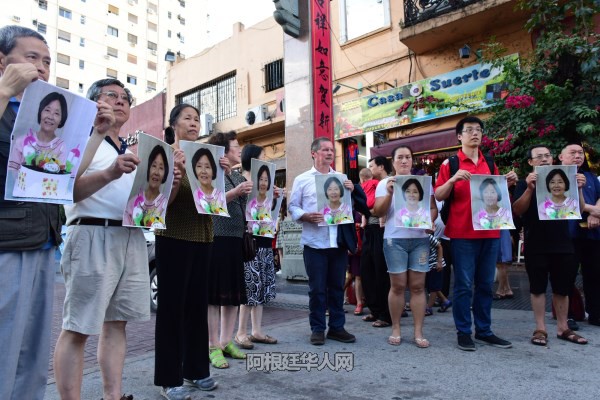 (阿根廷华人网1月31日讯 柳 军/文图)昨天下午19时,由阿根廷中国文化基金会主席黄菁发起,阿根廷主流媒体支持的寻找走失11天华人孙中琴女士宣传活动在布市中国城举行。中国驻阿使馆陈志军领事,旅阿侨领黄菁,王庆苍,曾强,董春风,刘芳勇,刘金钢,许文飞,陆元海,孙中琴女士的儿子马鹧宁,旅阿华人华侨代表,阿根廷JUAN CARR互助基金会主席JUAN CARR先生等人参加了活动,阿根廷《号角报》、《国家报》、阿根廷国家电视台等主流媒体进行了现场采访,多家电视台对活动进行了现场直播。