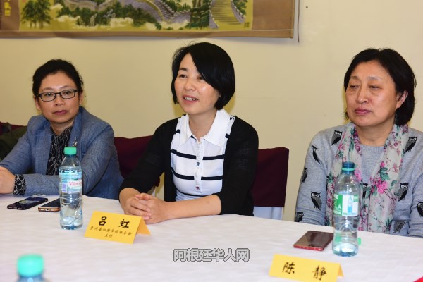 吕虹主席介绍说,贵州省近年来在各条战线都取得了可喜的成绩。她希望旅阿华人华侨能够到贵州省发展创业,为实现中国梦而共同奋斗。