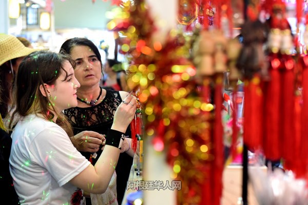 游人纷纷购买中国艺术品和中国新年饰物,表现了浓浓的中国情结。