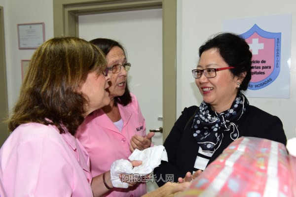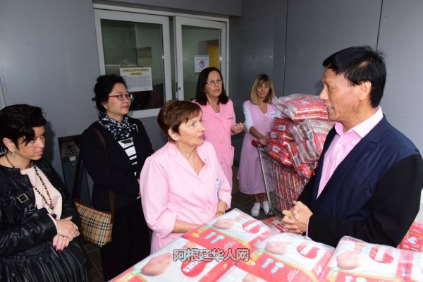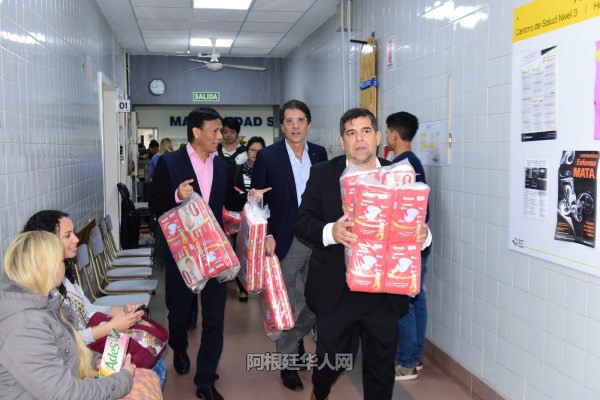 (阿根廷华人网5月2日讯 柳 军/文图)今天上午,阿根廷阿中投资贸易促进会主席何文强及促进会领导班子成员,在布市议员袁建平夫妇的陪同下来到布市妇产医院,为他们送去旅阿华人对住院儿童的关爱,为其送去医院所需婴幼儿用品,助阿根廷儿童健康成长。