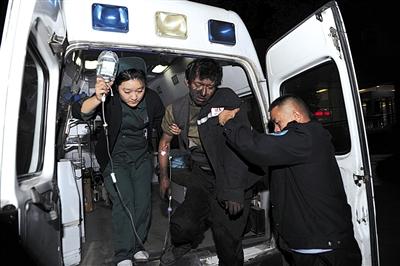 受伤的矿工被送往附近医院救治。新华社记者 赵戈 摄据新华社电 24日23时30分许,乌鲁木齐市米东区铁厂沟镇一煤矿发生采空区冒落事故,致16人遇难、11人受伤。记者从新疆煤...