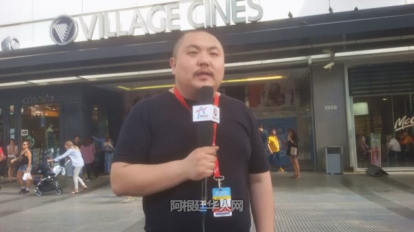 青年导演王飞飞在阿根廷接受媒体采访。