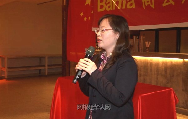 中国驻阿使馆领事部刘小洁主任在庆典活动上发表讲话,她说:“我代表驻阿使馆对Bahia华人商会的成立表示祝贺!希望商会班子成员能够带领广大华商积极开拓进取,遵守当地法律法规,做守法经商的带头人。认真开展和谐侨社建设,把商会建成凝聚侨心,团结奋进的集体,共同开创旅阿华侨华人美好的明天。”