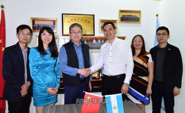 (阿根廷华人网4月12日讯 柳 军/文图)昨天,广东广播电视采访团抵达阿根廷首都,拍摄粤籍华人在阿创业故事,展现广东籍乡亲他乡奋斗历程。采访团成员首先来到中国城大中华食品购物中心采访拍摄华商经营状况,在阿根廷广东商会采访团成员与余永辉会长等人亲切交流,共商合作共谋发展。