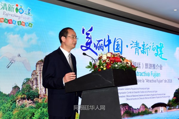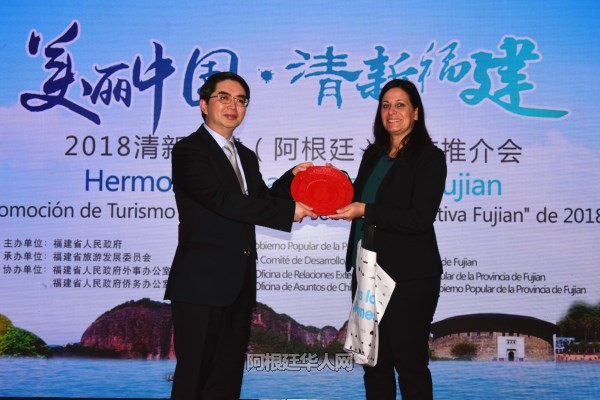 在推介会上,旅阿第二代华人曾维通过流利的西语讲解,结合画面与光影等多彩的展现手段,现场倾情推介清新福建旅游资源,福建土楼、鼓浪屿等世界遗产,以及“海丝”文化、茶文化等,让现场嘉宾深切感受到“清新福建”旅游的独特魅力。