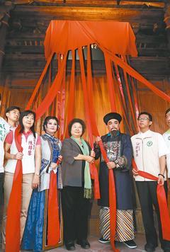 台湾最大古迹书院“凤仪书院”,经五年修复,高雄市长陈菊(中)等人昨天开幕启用。修复后的书院,馆内有许多古代Q版人物,十分逗趣。中新网11月1日电 据台湾《联合报》报道,清朝...