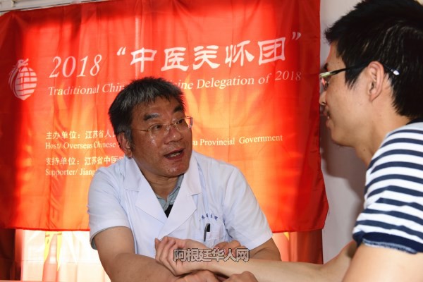 这次来阿慰侨义诊的江苏“中医关怀团”,由江苏省中医院的6名中医专家组成。江苏省中医院刚刚获得“2018年度中国医疗机构互联网品牌影响力全国第11名”、“中医医疗机构全国第2名,及2018年度医疗机构互联网品牌影响力百强排名第十一位的荣誉。