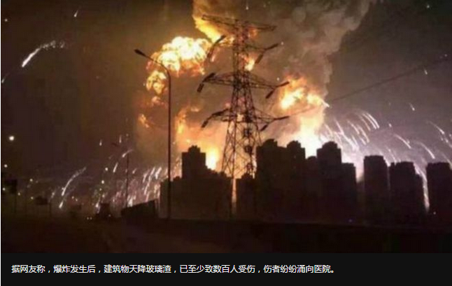 从网上流传的照片可见,火光直冒半空,而且出现巨大蘑菇云,附近许多建筑物都受损,有住宅玻璃被震碎、有写字楼天花倒塌、有学校大门玻璃散落一地。3Hj阿根廷华人网