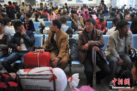 资料图:云南省曲靖市沾益县近400农民工赴浙江、杭州等沿海城市外出务工,云南迎来外出打工返程高峰。据了解,沾益县是云南省的劳务输出大县,全县30多万农民有3万都在