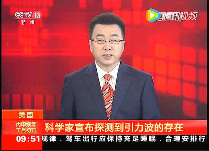 2016-02-12央视新闻报道:昨日,美国加州理工学院、麻省理工学院以及“激光干涉引力波天文台”的研究人员在华盛顿举行记者会,对外正式宣布他们探测到引力波的存在。引力波是爱因斯坦广义相对论实验验证中最后一块缺失的“拼图”。在爱因斯坦在广义相对论中预言了引力波存在的一百年之后,引力波终于被人类所发现。