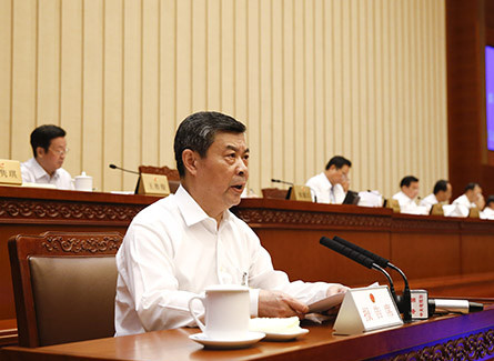 6月27日,十二届全国人大常委会第二十一次会议在北京开幕,全国人大常委会委员长会议提出了关于提请审议民法总则草案的议案。受委员长会议委托,全国人大常委会法制工作委员会主任李适时作了说明。中新社记者杜洋摄