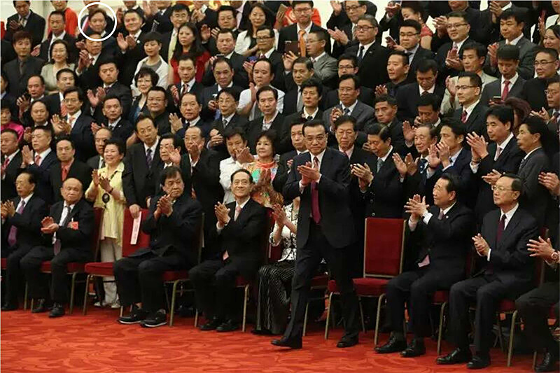 李克强总理同第八届世界华侨华人社团联谊大会代表合影。(图中圆圈者为阿根廷华人企业家协会主席严祥兴)