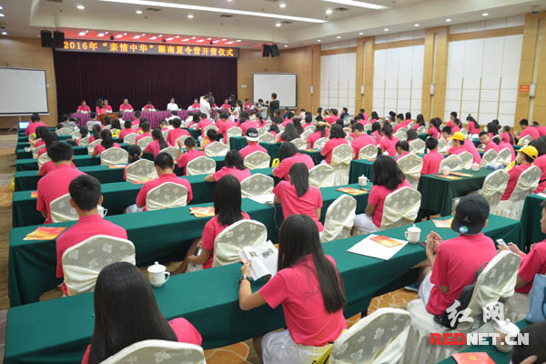 红网长沙7月11日讯(时刻新闻记者陈美淇通讯员向行军)7月11日,由中国侨联主办、湖南省侨联承办的2016“亲情中华”湖南夏令营在长沙开营,来自美国、阿根廷、丹麦、德国、日本等国的85名华裔青少年齐聚长沙开启了寻根之旅。中国侨联副主席康晓萍,湖南省副省长蔡振红,省政协副主席刘晓,中国侨联文化交流部部长刘奇,省委统战部副部长谭平,省侨联党组书记、副主席朱建山,省政协港澳台侨和外事委员会副主任李国雄,省侨联党组成员、副厅级纪检员章伯岗,省侨联副巡视员兰杨杰等出席,开营仪式由省侨联副主席孙民生主持。
