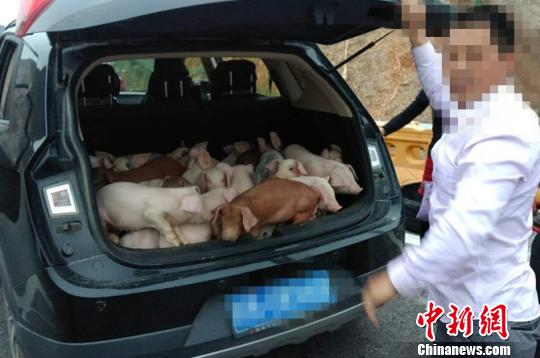 江西一车主后备箱塞满20多头小猪上高速被查(图)