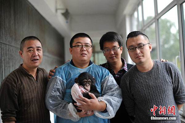 11月1日,山西太原动物园,饲养员“奶爸”照顾半岁大的“弃婴”小猩猩。2016年5月2日,该园雌性黑猩猩“老七”顺利产下宝宝。因为这批非洲黑猩猩系首次繁育,缺乏经验,“老七”把孩子晾在一边,不闻不问,小猩猩成为一名“弃婴”。于是,饲养员吴晋源、刘嶂鑫、赵璟、朱向博将小猩猩抱回育婴室,当起了全职"奶爸",给它梳洗喂奶,教它翻身站立,期待小猩猩长大后能够顺利回归种群。