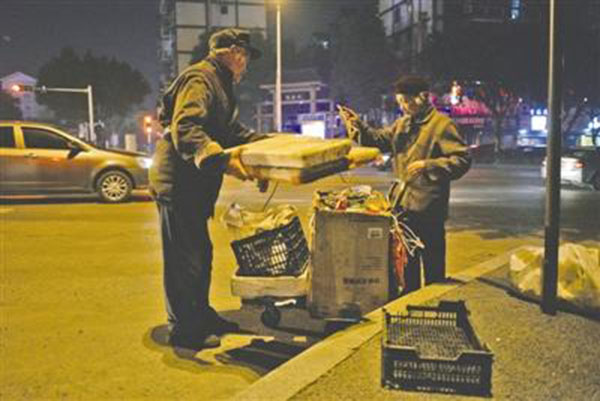 爱他就陪他捡垃圾!2老人每晚遛弯捡垃圾已成习惯 国内新闻 • 2016-11-22 16:12• 收藏本文 px2阿根廷华人网 饶兴德(右)陪着老伴陈万全一起捡垃圾px2阿根廷华人网 转载本网稿件,原则上需要书面授权,不得篡改稿件主题。本网随时有权要求第三方停止侵权行为。 本网所载内容或图片,若涉及侵权,请联系删除。 22 ___________ 2016/11 爱他就陪他捡垃圾!2老人每晚遛弯捡垃圾已成习惯 5条街、近8公里路、60多个垃圾桶和堆放点,这是75岁的陈万全和老伴饶兴德几乎天天晚上都会推着小车走上一遍的路线。 [ 微信长按识别二维码或扫码查看分享内容 ]