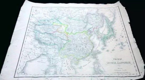 据悉,周洪春祖籍文成,是意大利侨界小有名气的古玩收藏爱好者,这幅意大利1860年出版的中国地图是他从意大利商人手中购得。