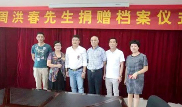 温州市档案局副局长邱东荣代表市档案局对周洪春的义举致以衷心感谢,同时表示,市档案局拥有先进、完备的档案保管条件和较强的档案信息开发利用能力,希望更多的社会人士积极向档案局捐赠档案资料。