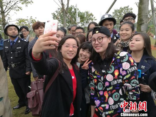 当日上午,吴敏霞、傅园慧一行刚一下车,就受到一群暨大学生粉丝的热情欢迎,大家纷纷上前请求合影留念。pEO阿根廷华人网