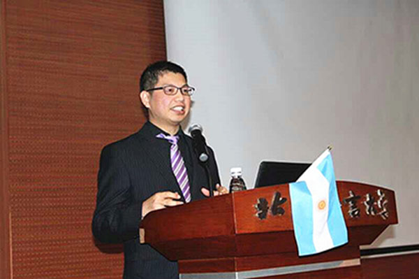 (阿根廷华人网12月22日北京讯 Diana/文、图)昨天北京时间16时,阿根廷国家探戈研究院研究员欧占明先生在北京语言大学举办讲座,向该大学西语系师生们讲解了探戈的历史和文化,使师生们对阿根廷探戈艺术的发展历史、舞蹈种类、探戈音乐等内容有了深刻了解,使古老的探戈艺术在中国得到更广泛的传播。