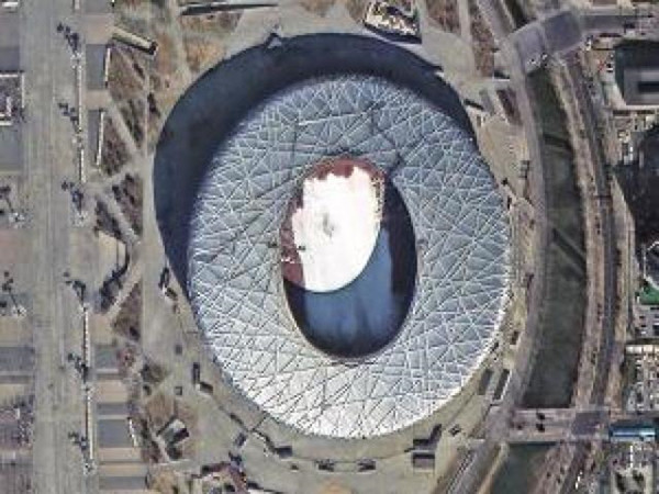 图为2008年北京奥运会主场馆,可以看到场馆内搭起的自由式滑雪场地。8Xa阿根廷华人网