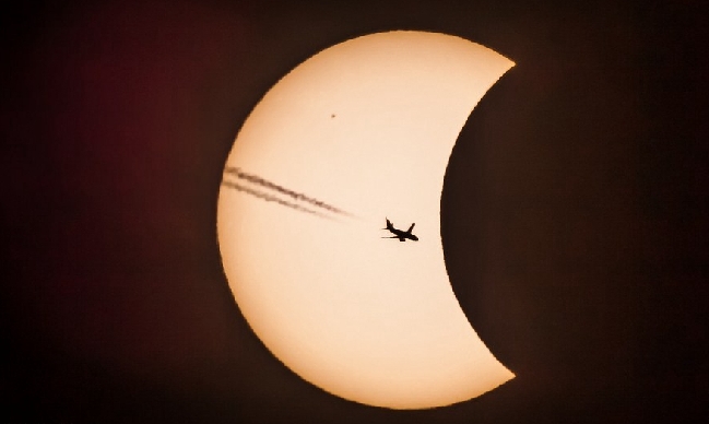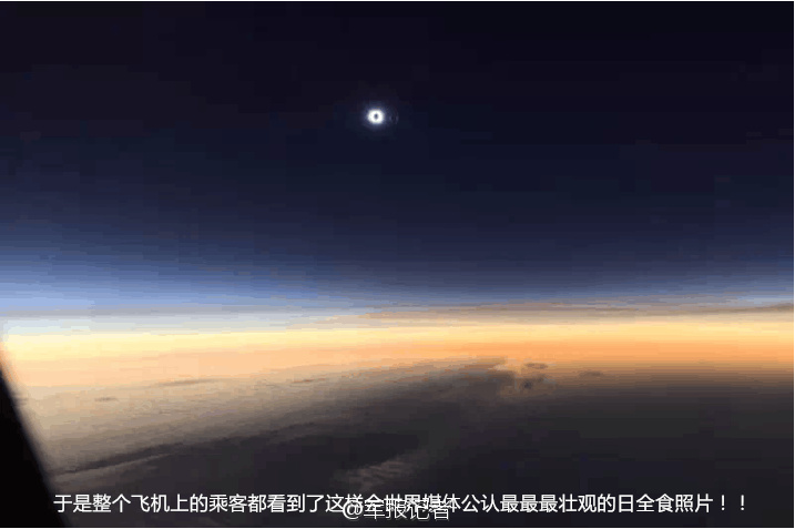 日前,北欧航空一架波音737-600被拍到飞跃日食,构成一个绝美画面。细数往昔,也有类似情况。最任性的是有次为让旅客看到日食,飞行员们有的开着飞机,偏离飞行航线,特意飞过去看。于是飞机上的乘客看到了全世界媒体公认最最壮观的日全食照片!(来源:军报记者微博)