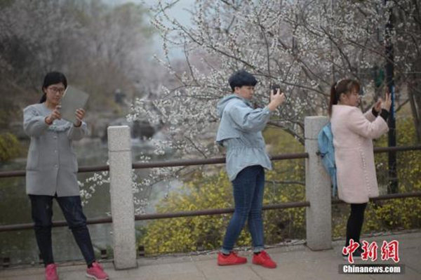图为市民在北京植物园赏春花。中新社记者刘关关摄QN3阿根廷华人网