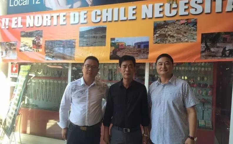 (阿根廷华人网4月7日讯 )据智华商报社,智利中文网讯报道,4月6日,是是旅智华商们为北部洪灾后重建赈灾活动的第一天。上午,在SAN ALFONSO 299(帕尔玛服装城)赈灾现场迎来了第一位募捐者,智利温州商会会长林正钱先生,捐款现金100万比索。