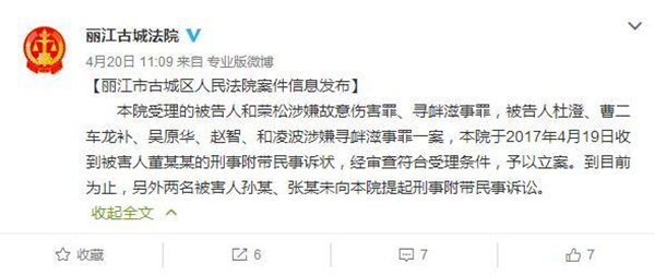 中国青年网北京4月21日电(记者孙钊)日前,云南丽江古城区法院通过微博发布案件信息