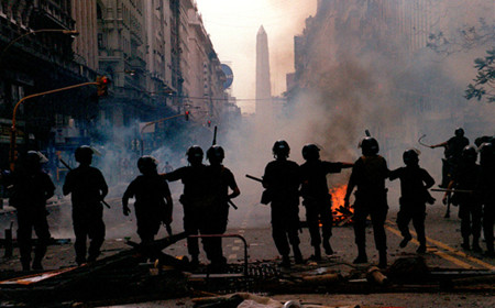 2001年12月,面对高额外债的阿根廷政府,宣布停止偿还本息,事实上等于宣布破产。许多阿根廷人一夜间从小康变为赤贫。