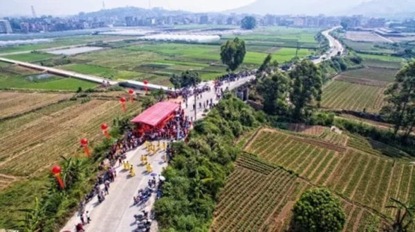 2017年5月4日报道,大约300年前,福建泉州南安美林月埔村和梧山村因灌溉水源结怨,立誓互不通婚,如今两村经济合作、人情往来日益密切。5月1日上午9时,是南安月埔村委会前主任傅梓芳和梧山村老年协会会长王跷鼻等人在3月底选定的良辰吉日。这一天,村里老少齐聚两村交界处梧山防堤路,见证这突破300年历史的一刻:解除禁婚仪式。图为仪式现场。iz4阿根廷华人网