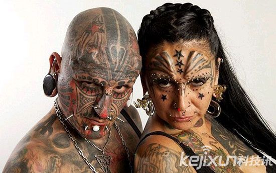 43岁的资深钻孔师维克托·佩拉尔塔(Victor Peralta)身上超过90%的皮肤刺有纹身。他的妻子、42岁的人体改造师加布里拉(Gabriela)身上超过65%的皮肤有纹身。此外,他们 50%左右的身体做过人体改造,共计77处,包括4处钻孔、11处身体移植、5处牙齿移植、4处耳扩等,真是天造地设的一对。有趣的是,这对夫妻还创下了 吉尼斯记录。