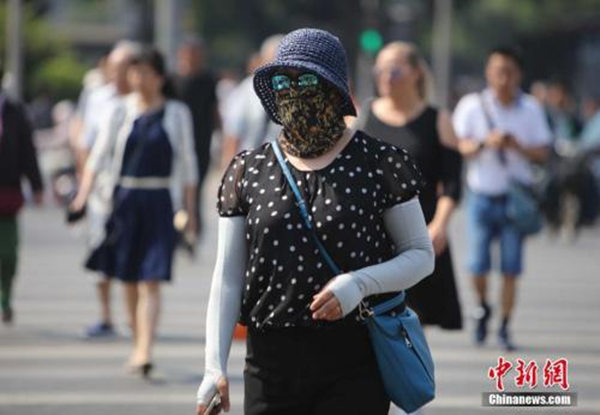 资料图:5月17日,北京街头的民众防晒出行。当日北京发布了今年首个高温黄色预警。中新社记者杨可佳摄GLd阿根廷华人网