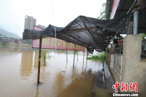 6月2日晨,闽北顺昌沿江店面小部被淹。 陈柏材摄AwX阿根廷华人网