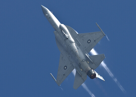JF-17 雷电战机,由中国航空工业第一集团公司与巴基斯坦空军共同出资,由成都飞机设计研究所、成都飞机工业集团公司与巴基斯坦航空综合企业合作研制的多用途单座单发轻型战机。