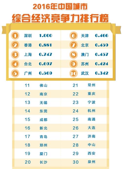 2016 年中国城市综合经济竞争力:深圳第1 北京第7 国内新闻 • 2017-06-23 06:06• 收藏本文 Zjl阿根廷华人网 转载本网稿件,原则上需要书面授权,不得篡改稿件主题。本网随时有权要求第三方停止侵权行为。 本网所载内容或图片,若涉及侵权,请联系删除。 23 ___________ 2017/06 2016 年中国城市综合经济竞争力:深圳第1 北京第 2016 年中国城市综合经济竞争力:深圳第1 北京第7 [ 微信长按识别二维码或扫码查看分享内容 ]
