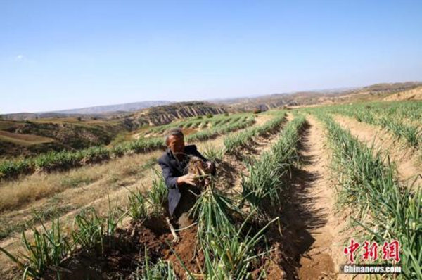 资料图:村民正在拔葱。张远摄wDX阿根廷华人网