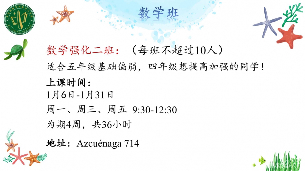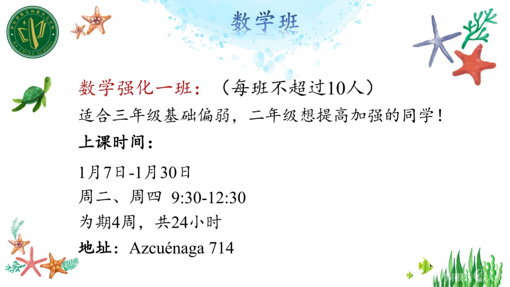 数学强则国强,在海外数学普遍偏弱的国情下,作为华人的后代我们一定要认真且富有钻研精神地学习数学!暑期我们将推出两个数学强化班,帮助学生查缺补漏,拓宽数学思维,养成细致耐心高效的学习习惯!