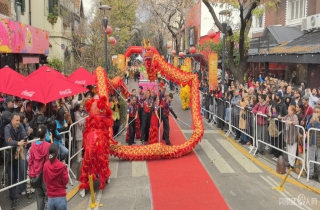 舞龙舞狮点睛仪式为法会拉开序幕。布宜诺斯艾利斯 13 区区长 Florencia Scavino 亲临现场,感谢佛光山将意义深远的节日带到中国城。当天恰逢佛诞与阿根廷国庆,她深感能与大家一同庆祝的荣幸,并希望这份喜悦能传遍整个社会。布市宗教事务总局长发来贺函,称赞佛光山推广慈悲、智慧与和平的普世价值,在促进文化多元与社会和谐方面堪称典范,承诺持续支持宗教团体为构建包容社会努力。