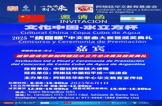 诚挚邀请贵会组织成员参加 2025 文化中国·水立方杯中文歌曲大赛阿根廷赛区总决赛。6月 1日上午八点至下午三点半,在Teatro Metropolitan SURA大剧院举办,地址:Av. Corrientes 1343, C1043 Cdad. Autónoma de Buenos Aires。8点至13点总决赛,13点至14点才艺表演,14点至15.30颁奖典礼。再次感谢阿根廷拉普拉塔华商联谊会的支持,祝愿贵会蒸蒸日上,未来携手创造更多辉煌!