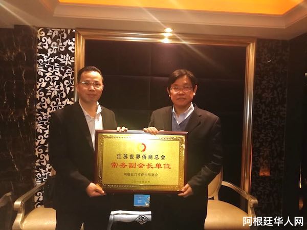 阿根廷门多萨中华商会获江苏世界侨商总会授牌