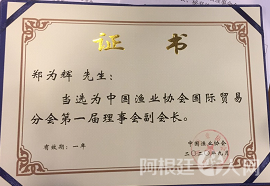 中国渔业协会国际贸易分会成立,旅阿侨领郑为辉当选副会