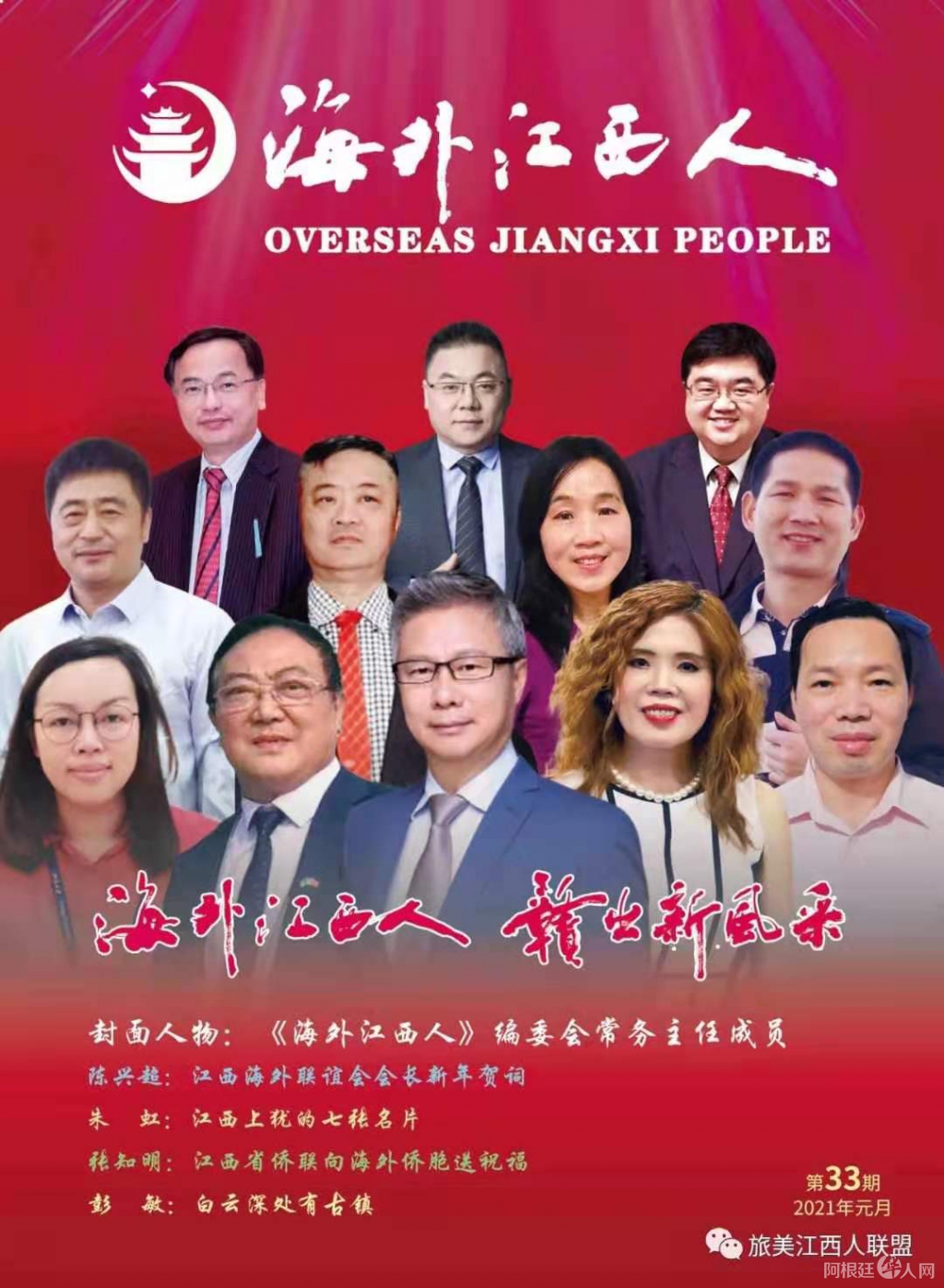 《海外江西人》总第33期会刊 海外江西人 • 2021-01-28 13:17• 收藏本文 转载本网稿件,原则上需要书面授权,不得篡改稿件主题。本网随时有权要求第三方停止侵权行为。 本网所载内容或图片,若涉及侵权,请联系删除。 28 ___________ 2021/01 《海外江西人》总第33期会刊 [ 微信长按识别二维码或扫码查看分享内容 ]