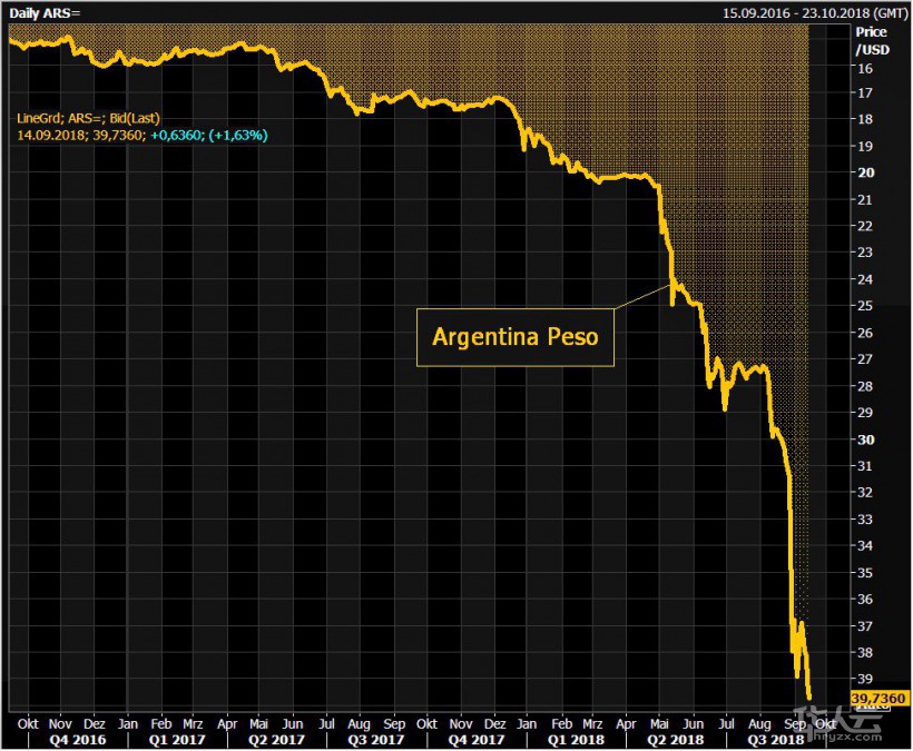 由于投资者担心该国经济崩溃及资本外逃,阿根廷比索今年迄今已经跌超50%,“荣膺”新兴市场表现最差货币。