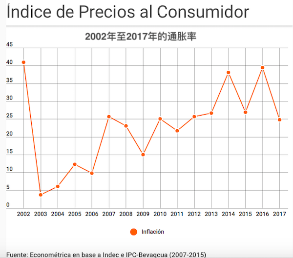 随着2017年全年通胀率被公布,阿根廷的通货膨胀已连续11年来超过了两位数。据世界货币基金组织(IMF)的统计数据显示,阿根廷已成为世界上十个通胀率最高的国家之一,一同被“入选”的有委内瑞拉和八个非洲国家。长期以来,面对高通胀,阿根廷市民似乎已经有些麻木了:无论是超市购物、周末去买衣服、重新签订租房合同、申办按揭手续、储蓄投资等等,所有这些经济决策都无时无刻不被生活成本的提高所左右。