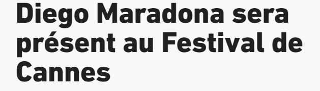 据悉,由英国电影制作人阿西夫-卡帕迪亚执导的关于马拉多纳的纪录片将在戛纳电影节期间上映,而阿根廷传奇马拉多纳也将会现身戛纳电影节,出席上映活动。这并不是马拉多纳第一次出席电影节,早在2008年马拉多纳就曾参加过戛纳电影节,当时也是出席一部关于他的纪录片的活动。