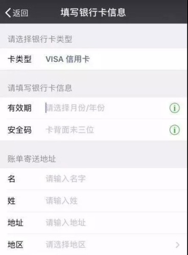 如果是海外银行卡,目前只支持绑定Visa、Master、JCB三种信用卡。在这种情况中,绑定时需要验证卡号、有效期、CVN2。