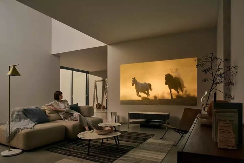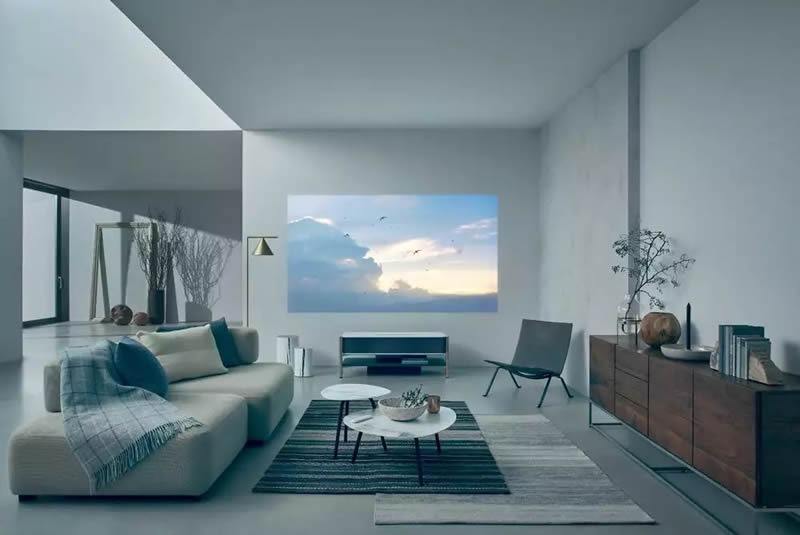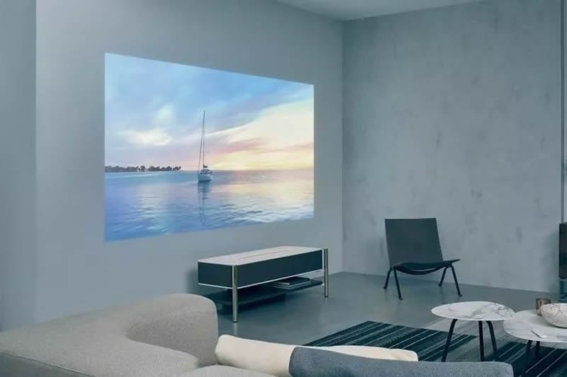 普通投影仪以氙气灯作为光源,投射距离远导致亮度低、清晰度差,放映时得占用不少室内空间,线缆也是烦人的问题。