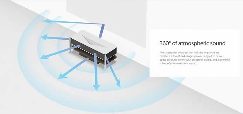 值得一提的是,它不仅是台激光投影仪,还内置Glass Sound音响系统。